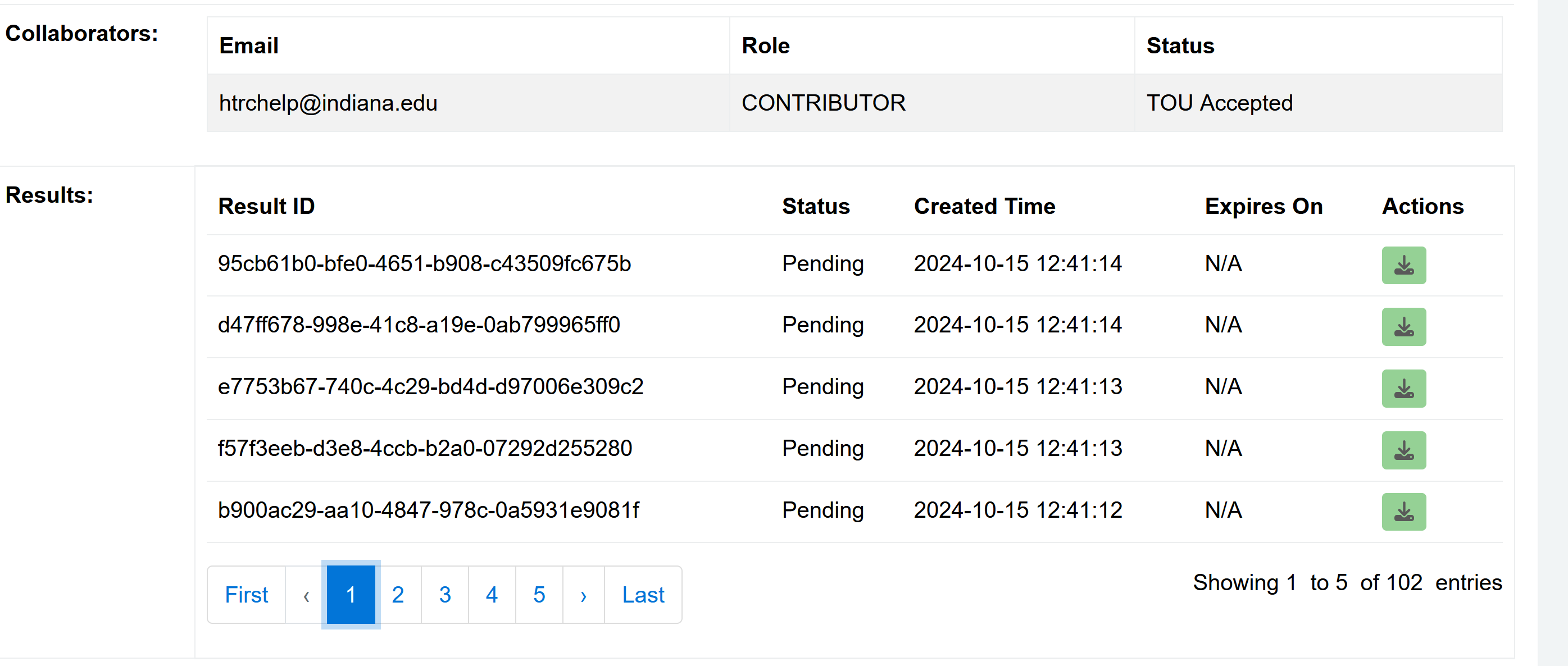 と入力して送信すれば、外部出力の申請となる。なおよくエラーが出るので、その場合は一度サーバーを再起動するとよい。HTRC の研究者による確認が行われた後、出力が認められれば、HTRC のウェブサイトの自分のプロジェクトのページの結果の欄にダウンロード可能な結果が掲載される(図1)。許可された場合、アクション欄のボタンを押してダウンロードできる。