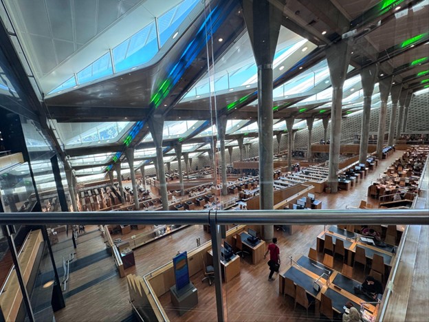 アレクサンドリア図書館はデジタルアーカイブによる文化遺産の保存と公開において、中東・北アフリカ地域をリードする存在である。館内には最先端のデジタルラボが設置されており、数多くの専門スタッフが書画、写真フィルム、書籍、写本、地図など様々な資料をスキャンし、メタデータ付与や電子保存を進めている 。こうして蓄積された膨大なデジタル資産は、同館が独自開発したデジタル資産リポジトリ(Digital Assets Repository, DAR) [2]によって一元管理され、オンライン検索や閲覧が可能になっている 。このような技術基盤に支えられ、同館は国内外の機関と協力して数多くの歴史的資料のデジタル化プロジェクトを遂行している 。