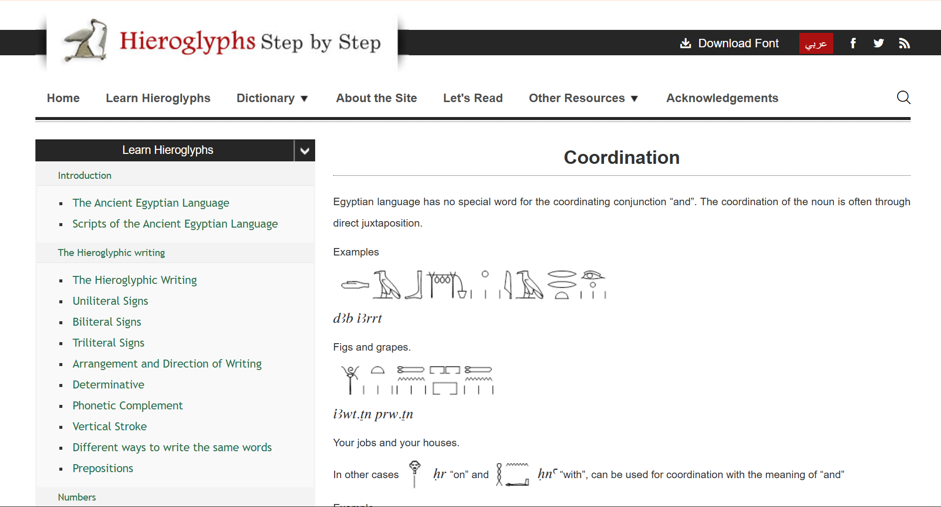 アレクサンドリア図書館はデジタル・アーカイブの構築に留まらず、それらを活用したデジタル教材の整備やオンライン教育にも先進的な役割を果たしている。図書館附属の「アレクサンドリア図書館アフリカ情報局 (Bibliotheca Alexandrina Information for Africa, BAIFA)」[13]では情報リテラシーや研究スキル向上のためのオンライン講座を多数開講しており、アフリカ諸国を含む幅広い受講者がインターネット経由で無料参加できるようになっている 。これらのコースは図書館員や研究者向けの専門スキルトレーニングから学生・一般向けの情報活用講座まで多岐にわたり、MOODLE プラットフォーム上で提供されている 。例えば論文執筆法、文献管理と引用法、オンライン・データベースの活用法、プレゼンテーション技能、といった実践的テーマの多言語講座が用意されており、受講者は好きな時間に自主学習できる 。例えば、エジプト学であれば、Hieroglyphs Step by Step[14]という、ヒエログリフで書かれた古代エジプト語を学ぶオンライン・プラットフォームがある。こうしたオープンな教育資源は地域の研究能力の底上げに貢献している。このように世界的なオープン教育資源の整備にも貢献することで、知の普及における図書館の新たな役割を示している。